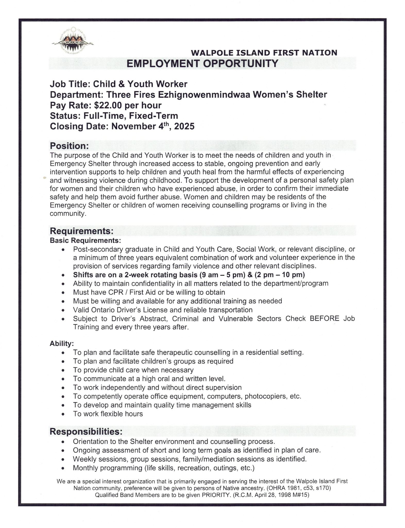 Department: Three Fires Ezhignowenmindwaa Women’s Shelter